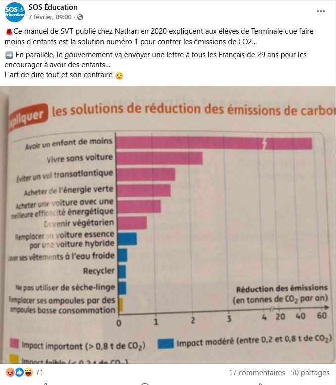 Un manuel scolaire qui conseille… d’avoir moins d’enfants